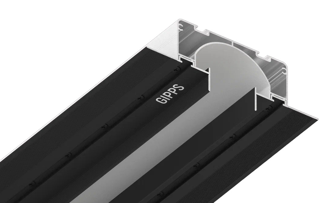 Чёрный GIPPS 35 – конструкционный профиль, используется в качестве чёрной ниши для монтажа точечных светильников, спотов или карнизов.